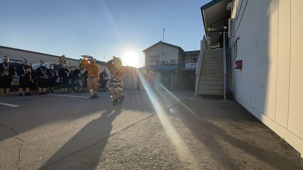 本日は会社に「一番札」を取った八太郎えんぶり組の皆さまが来社され、勇壮なえんぶりを披露してくださいました。